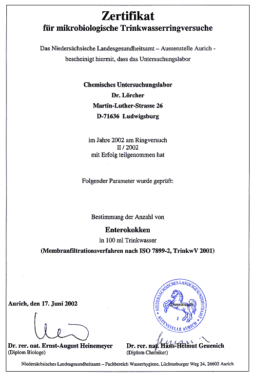 Trinkwasserringversuch nach der TrinkwV 2001 auf
